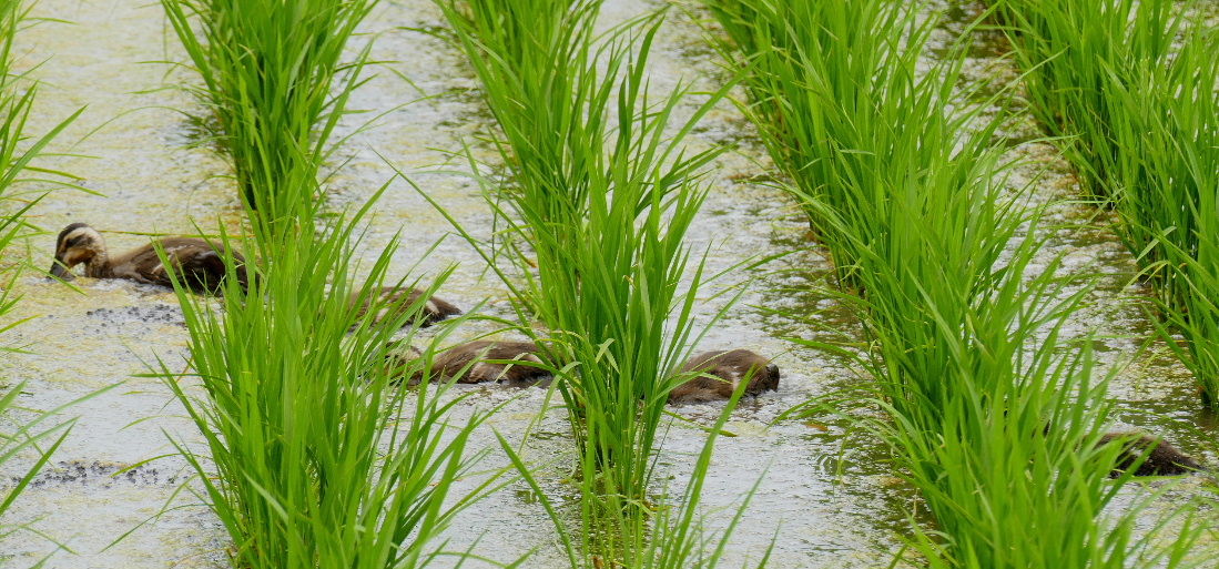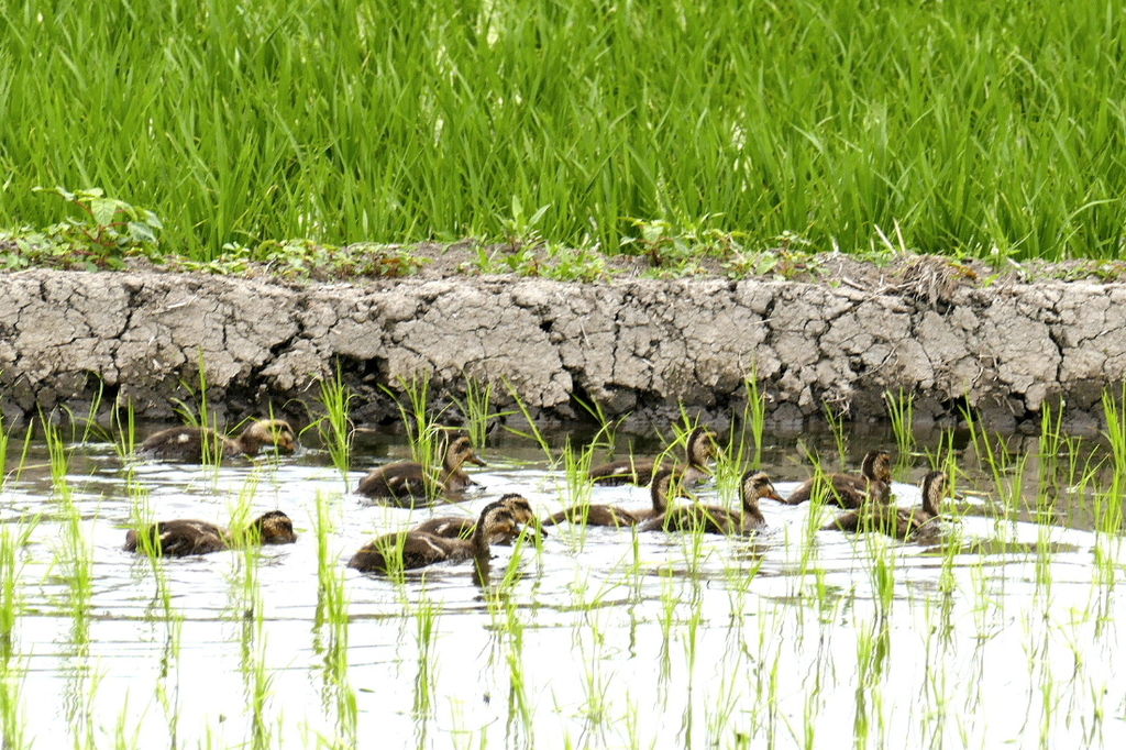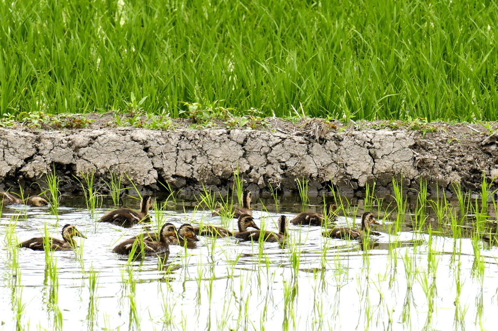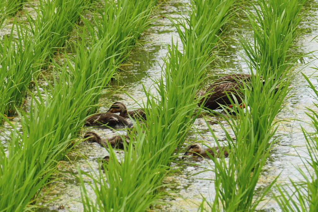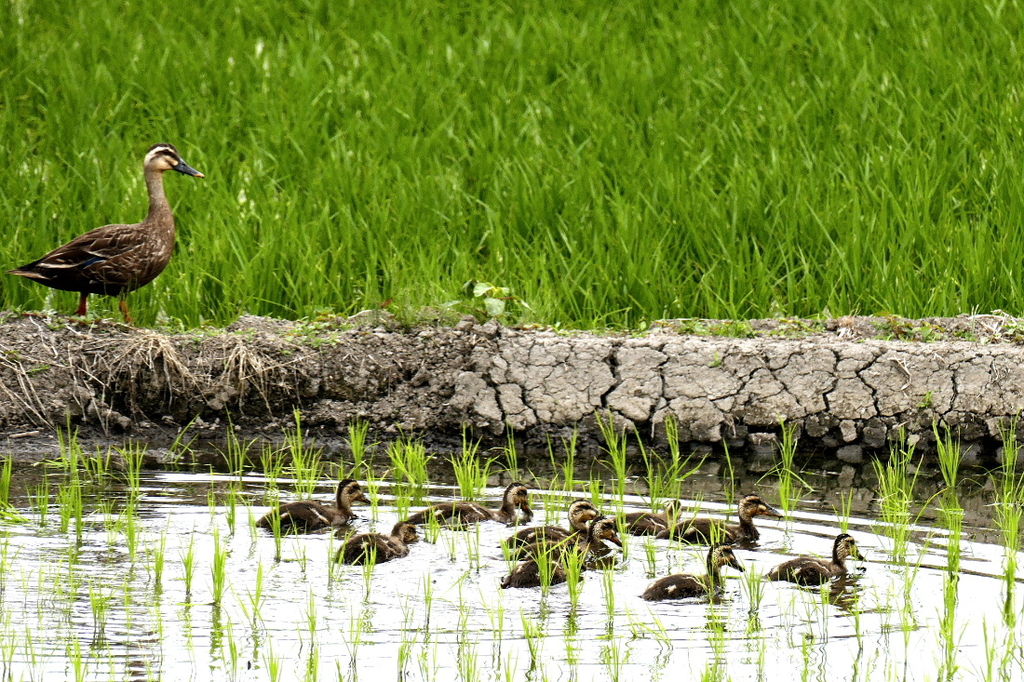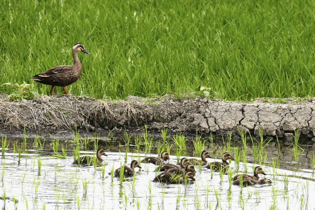★カルガモの雛と母親が~♪
